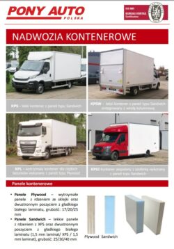 Katalog nadwozi kontenerowych Pony Auto przeznaczony dla firm transportowych i produkcyjnych.
